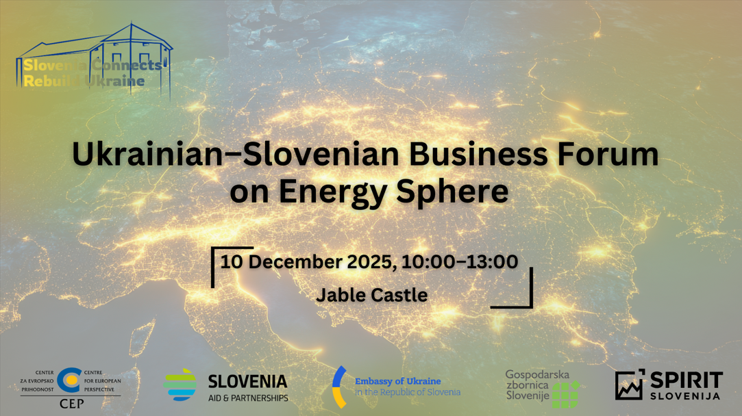 Center za evropsko prihodnost (CEP) v sodelovanju z Veleposlaništvom Ukrajine, Gospodarsko zbornico Slovenije in agencijo SPIRIT Slovenija organizira Ukrajinsko–slovenski poslovni forum na področju energetike, ki bo potekal 10. decembra 2025, od 10.00 do 13.00, na Gradu Jable (Loka pri Mengšu) ter prek spleta.. Dogodek poteka v okviru programa Obnova in rekonstrukcija Ukrajine, ki ga izvaja […]